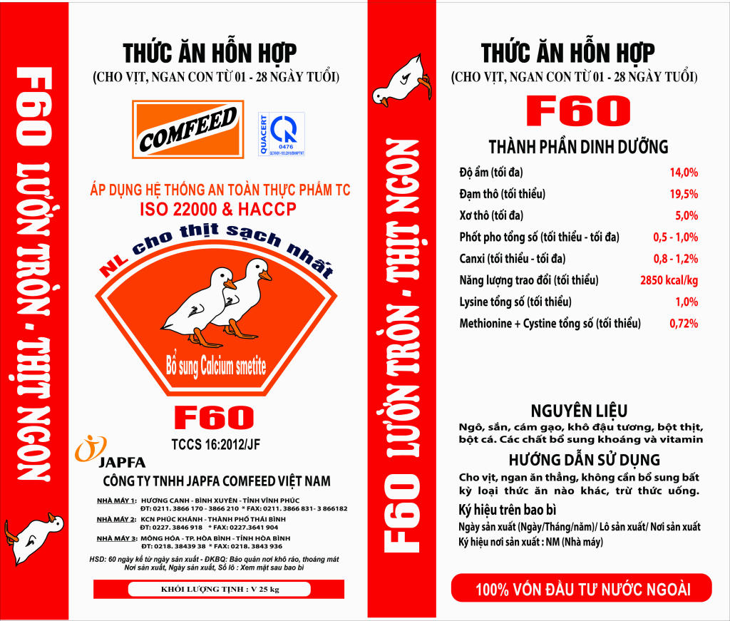 Corn, tapioca, rice bran, soybean meal, meat meal, fish meal, premix and vitamin