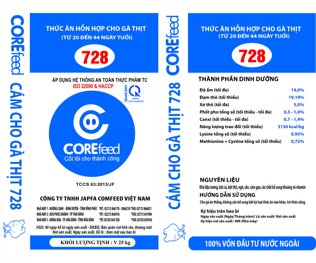 Corn, tapioca, rice bran, soybean meal, meat meal, fish meal, premix and vitamin
