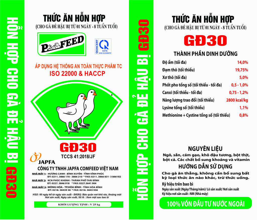 Corn, tapioca, rice bran, soybean meal, meat meal, fish meal, premix and vitamin