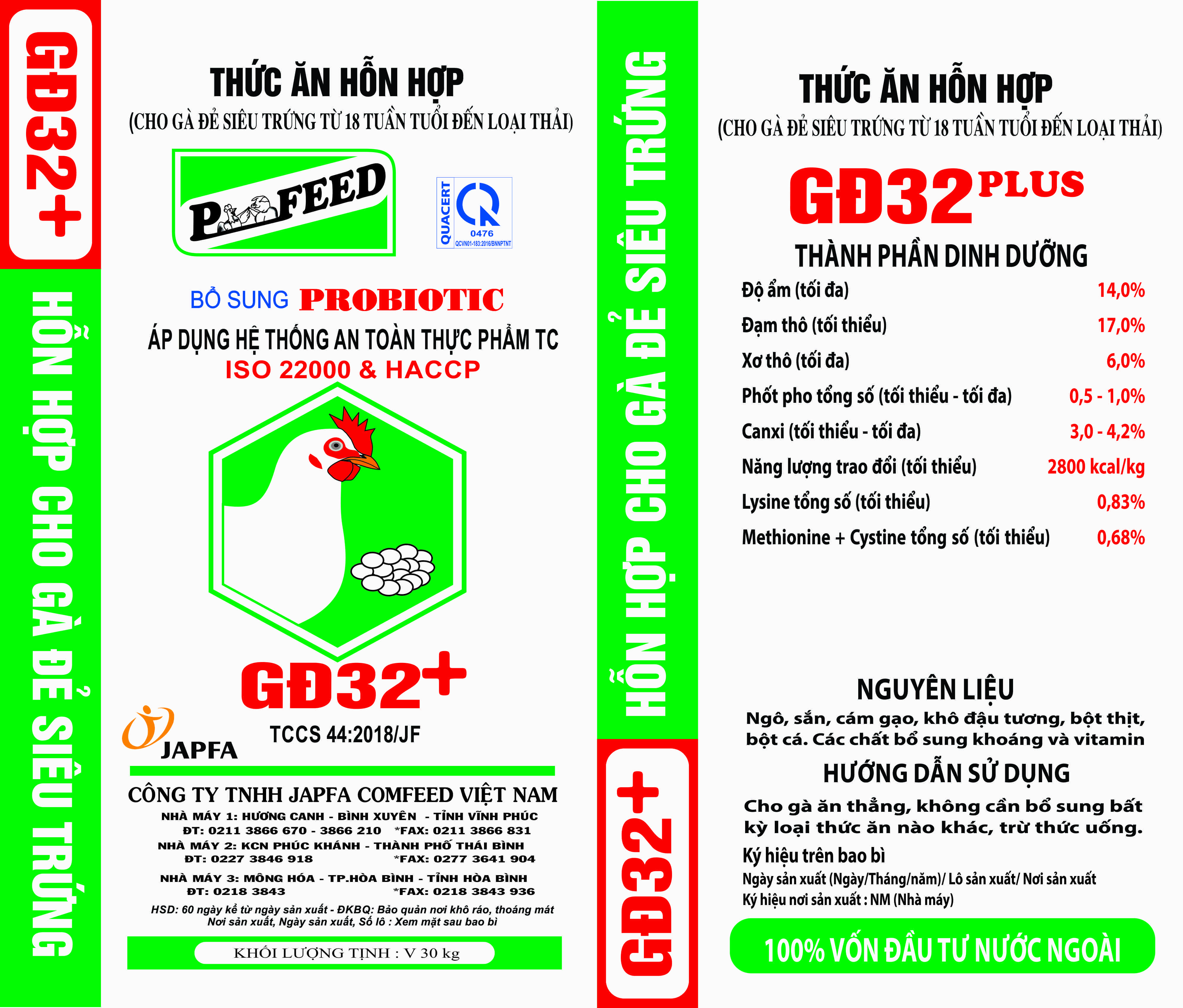 Corn, tapioca, rice bran, soybean meal, meat meal, fish meal, premix and vitamin