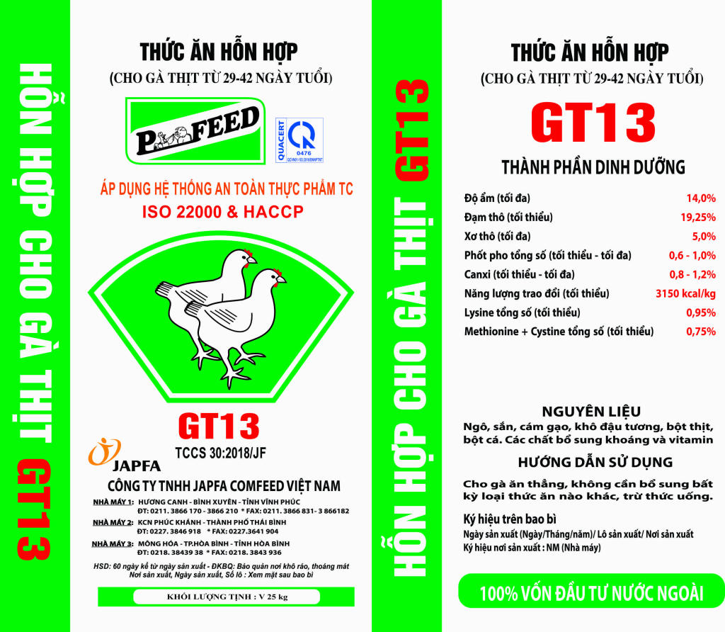 Corn, tapioca, rice bran, soybean meal, meat meal, fish meal, premix and vitamin