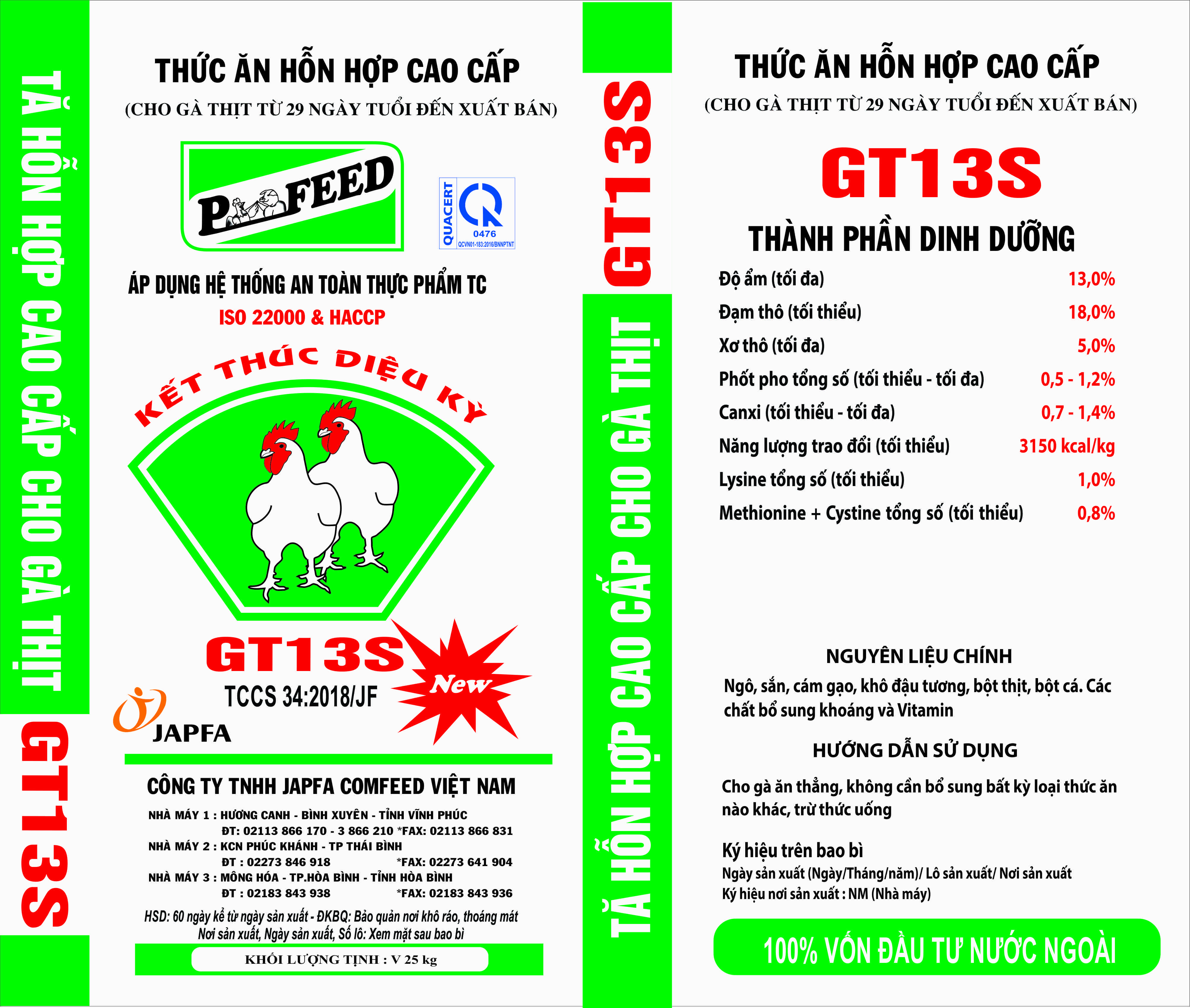 Corn, tapioca, rice bran, soybean meal, meat meal, fish meal, premix and vitamin