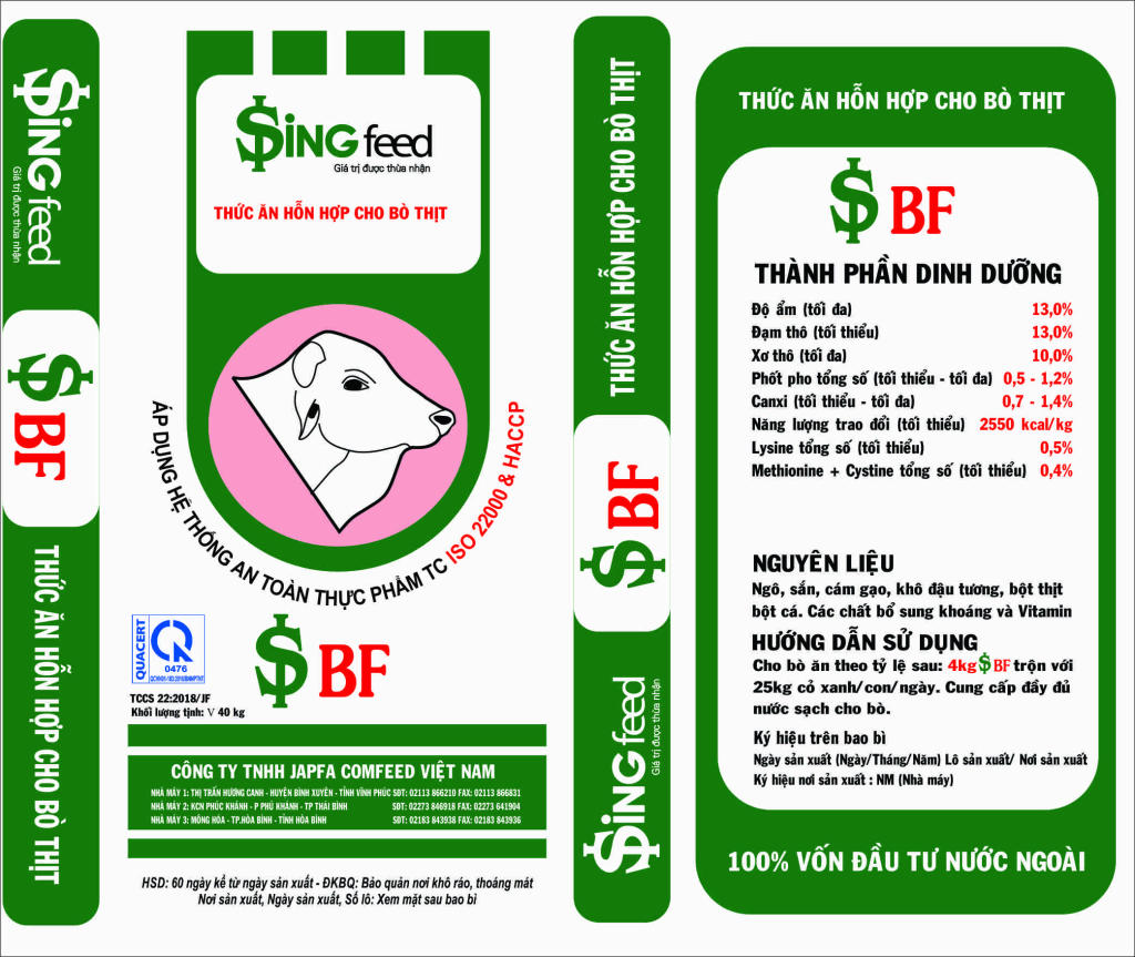 Corn, tapioca, rice bran, soybean meal, meat meal, fish meal, premix and vitamin