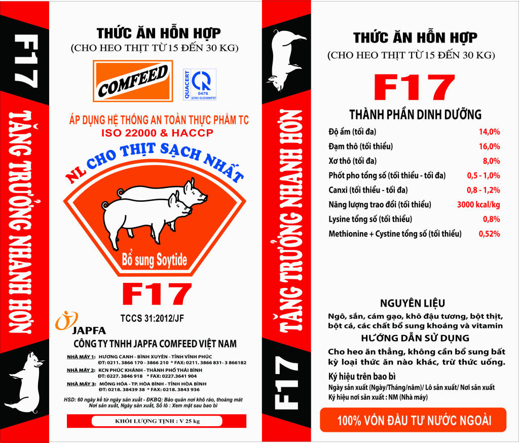 Corn, tapioca, rice bran, soybean meal, meat meal, fish meal, premix and vitamin