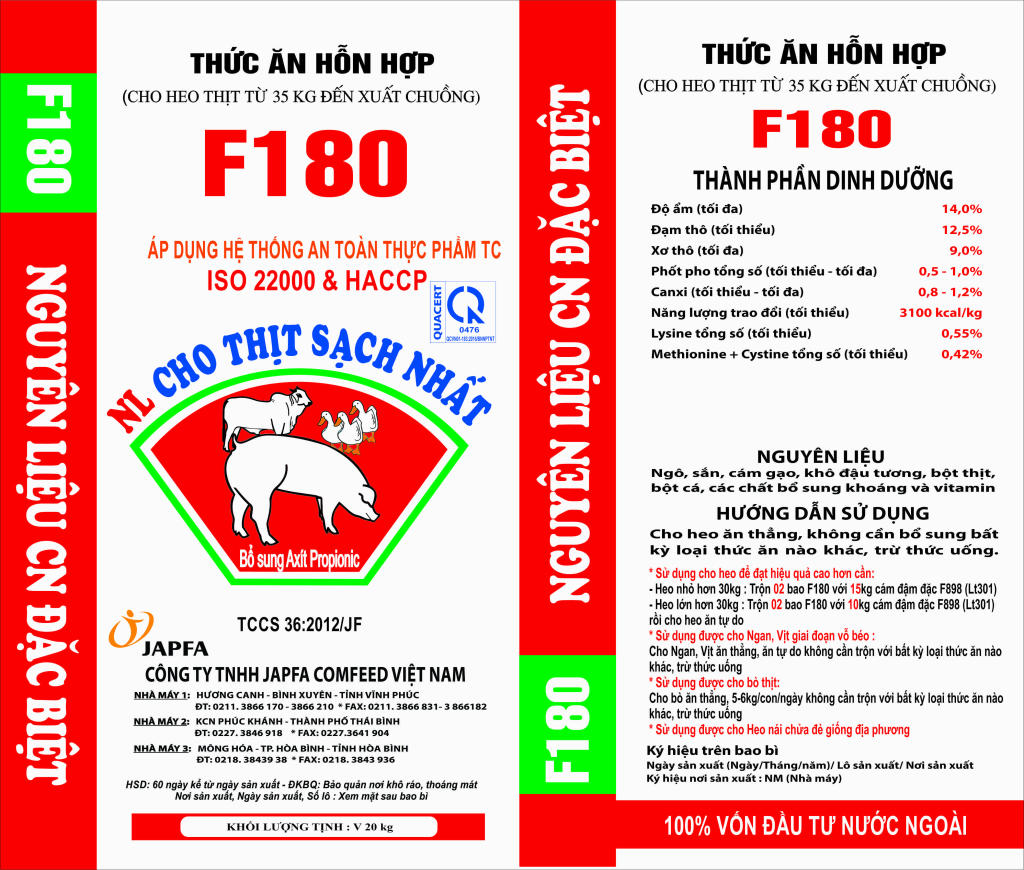 Corn, tapioca, rice bran, soybean meal, meat meal, fish meal, premix and vitamin