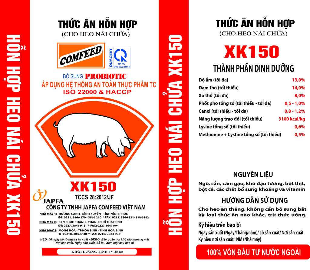 Corn, tapioca, rice bran, soybean meal, meat meal, fish meal, premix and vitamin