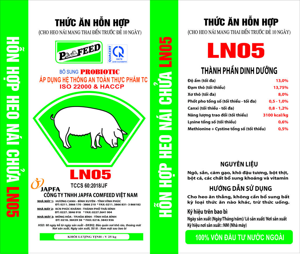 Corn, tapioca, rice bran, soybean meal, meat meal, fish meal, premix and vitamin