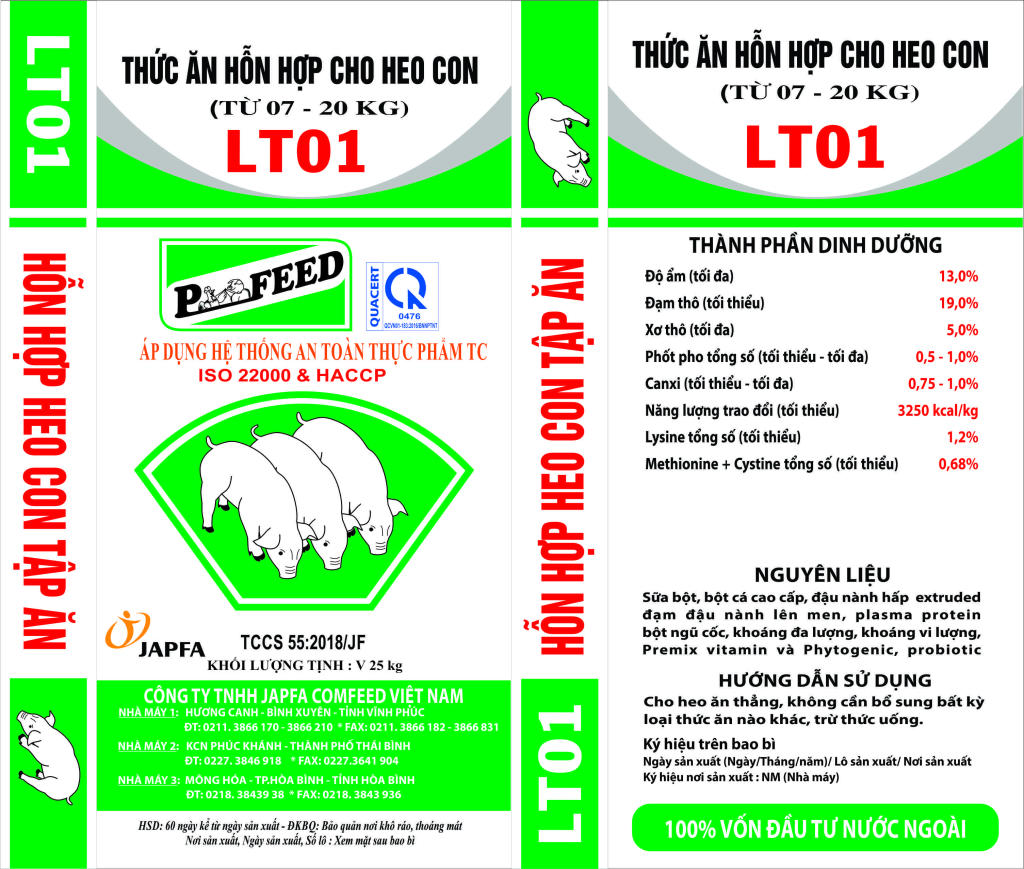 Corn, tapioca, rice bran, soybean meal, meat meal, fish meal. The mineral and vitamin