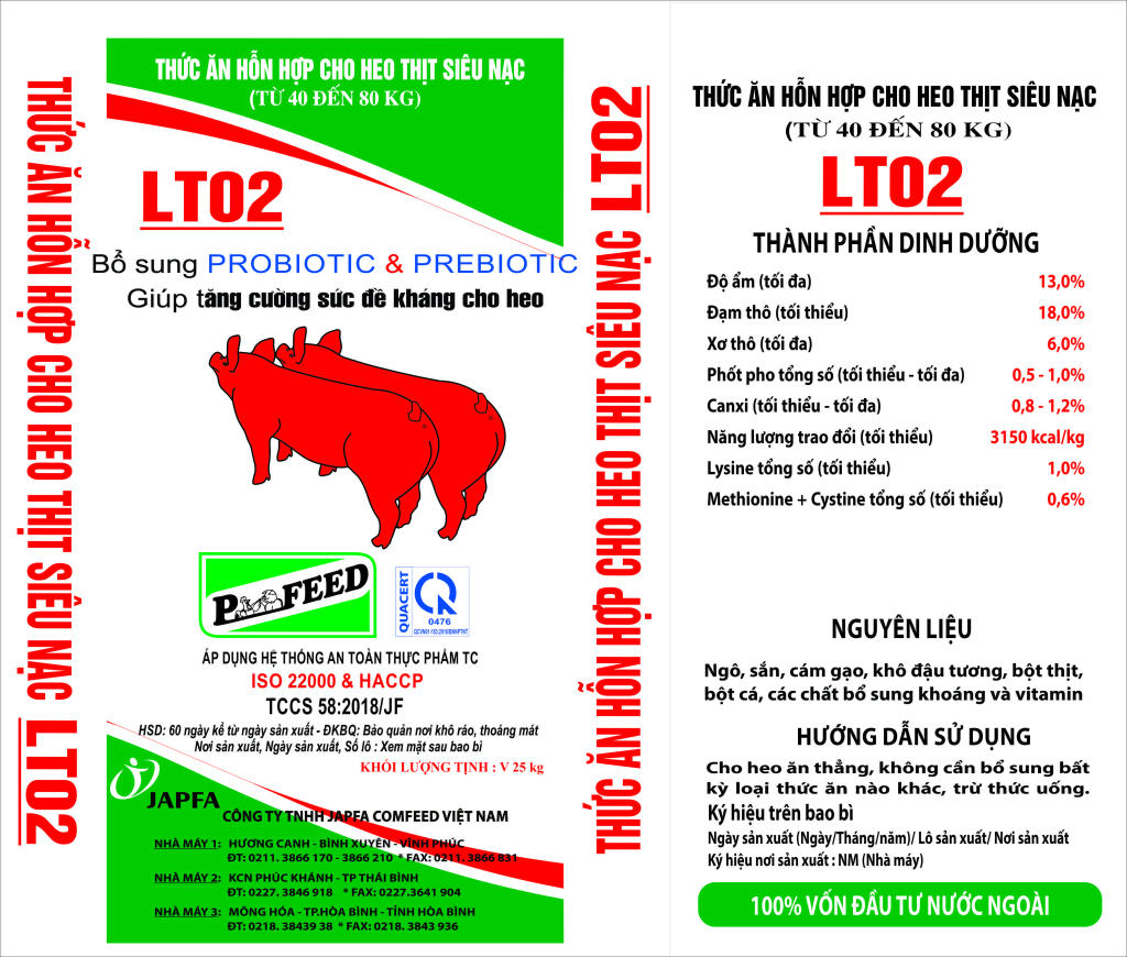 Corn, tapioca, rice bran, soybean meal, meat meal, fish meal, premix and vitamin