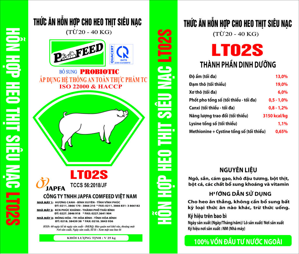 Corn, tapioca, rice bran, soybean meal, meat meal, fish meal, premix and vitamin