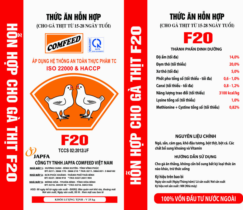 Corn, tapioca, rice bran, soybean meal, meat meal, fish meal, premix and vitamin