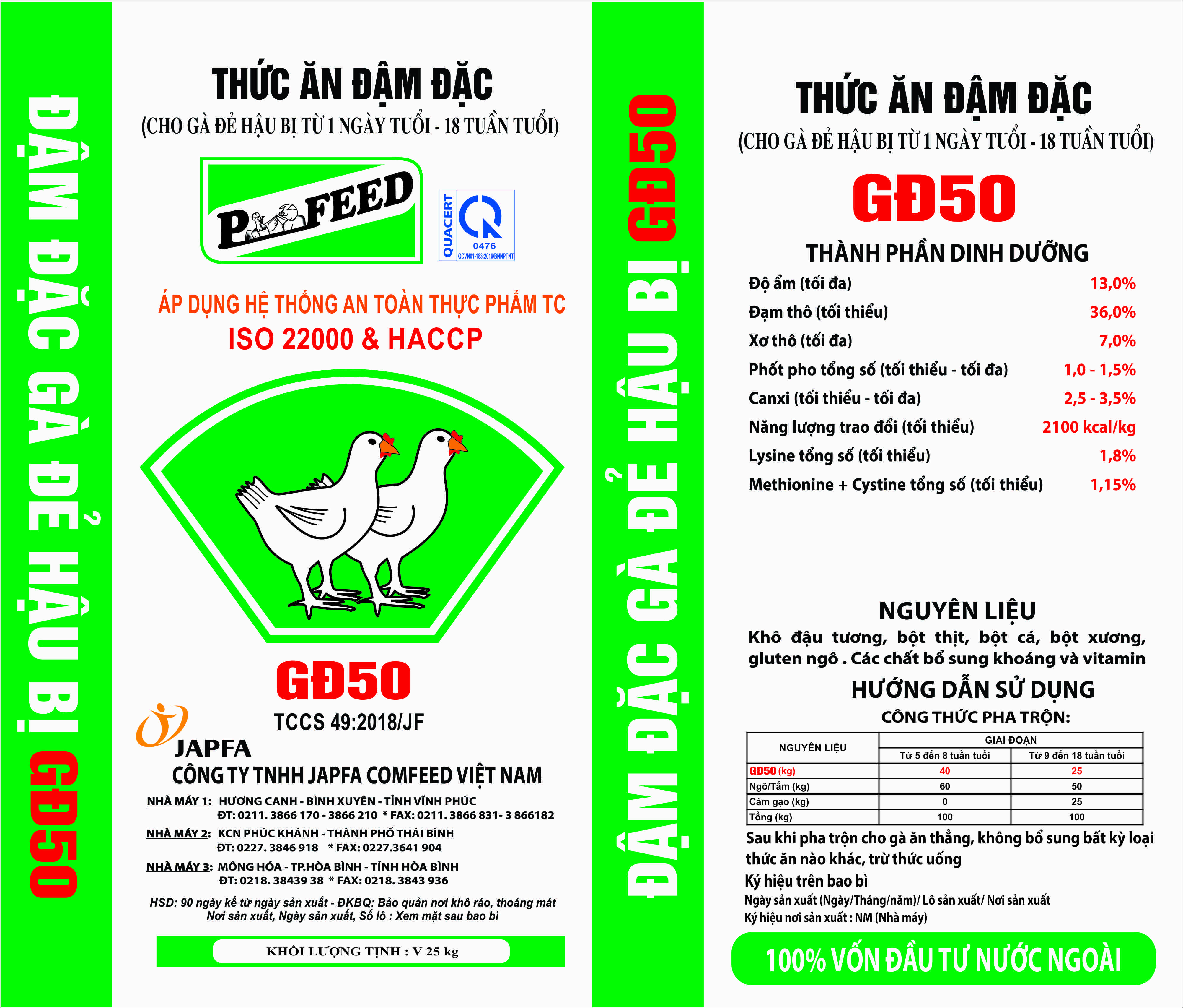 Corn, tapioca, rice bran, soybean meal, meat meal, fish meal, premix and vitamin