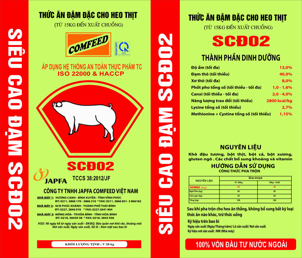 Corn, tapioca, rice bran, soybean meal, meat meal, fish meal, premix and vitamin