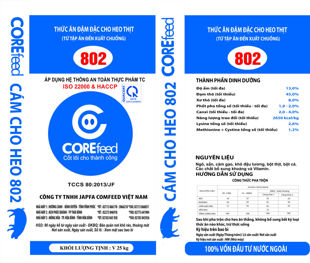 Corn, tapioca, rice bran, soybean meal, meat meal, fish meal, premix and vitamin
