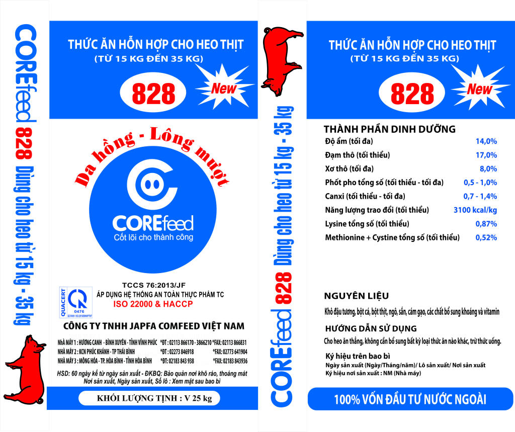 Corn, tapioca, rice bran, soybean meal, meat meal, fish meal, premix and vitamin