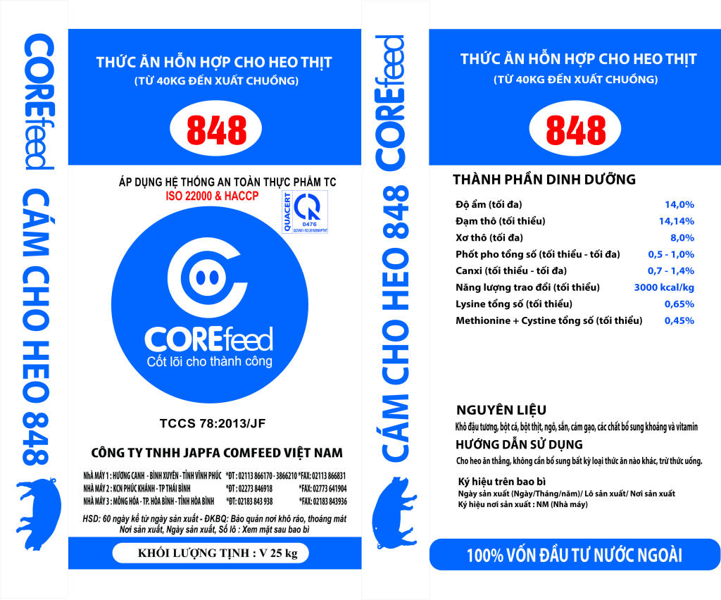 Corn, tapioca, rice bran, soybean meal, meat meal, fish meal, premix and vitamin
