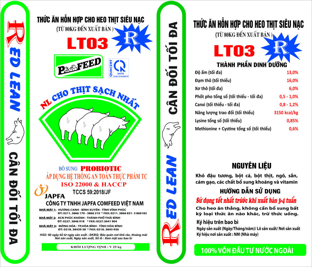 Corn, tapioca, rice bran, soybean meal, meat meal, fish meal, premix and vitamin