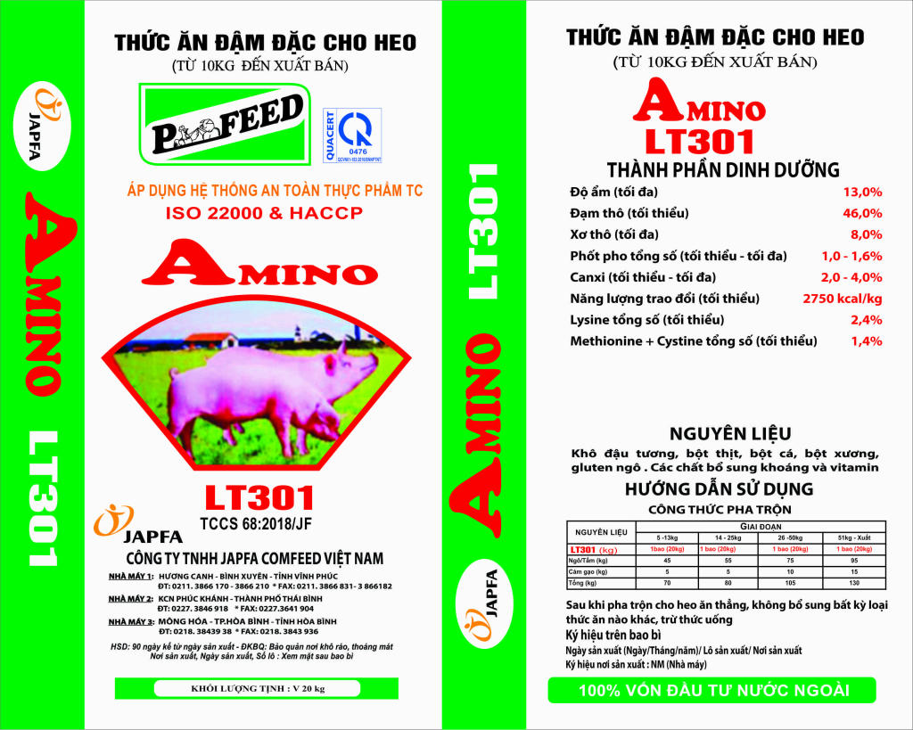 Corn, tapioca, rice bran, soybean meal, meat meal, fish meal, premix and vitamin