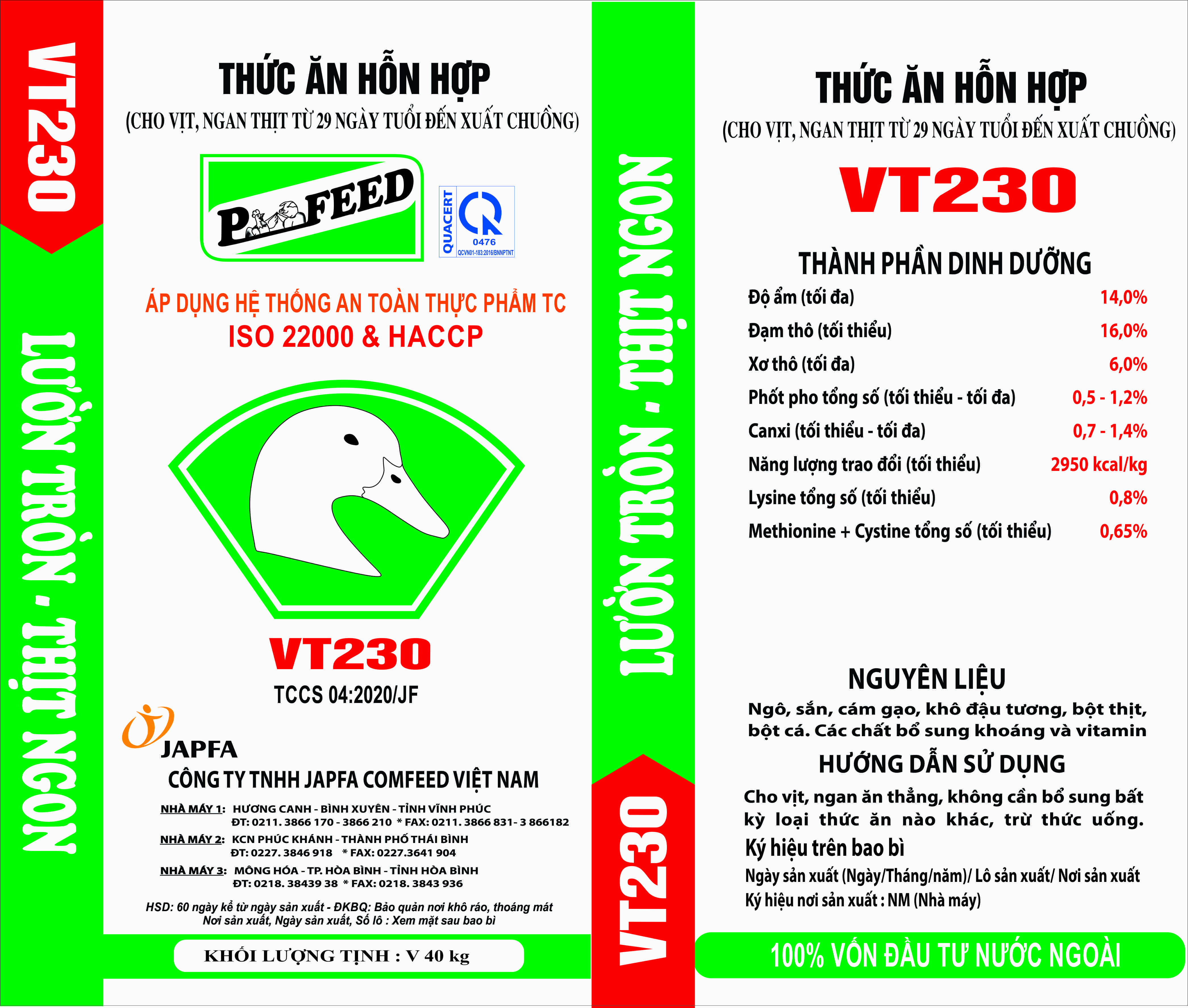 Cho ăn thẳng, không cần bổ sung bất kỳ loại thức ăn nào khác, trừ thức uống.